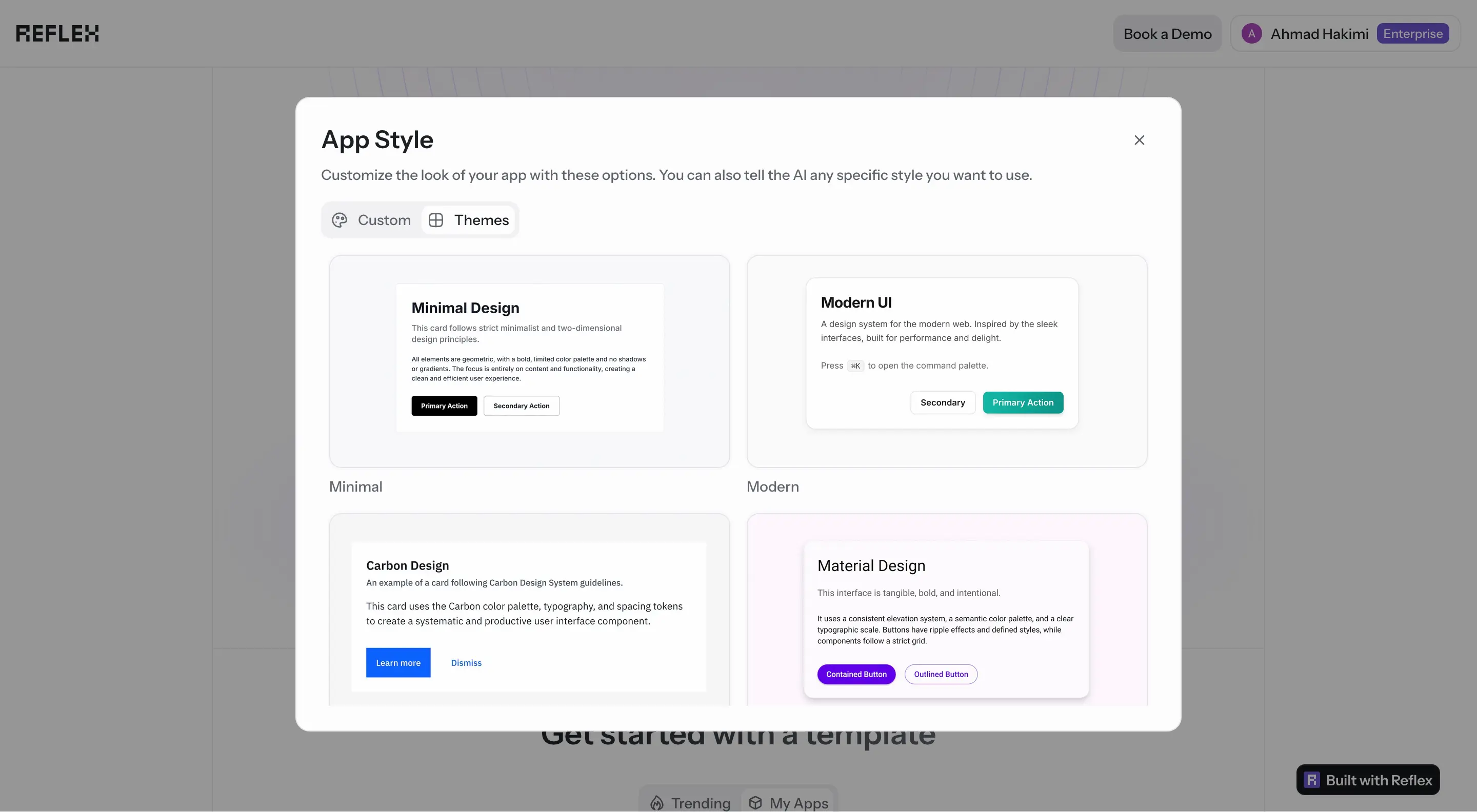 The App Style feature allows you to customize the visual appearance of your AI-generated applications. You can choose from predefined design themes or create custom styling to match your brand and preferences.