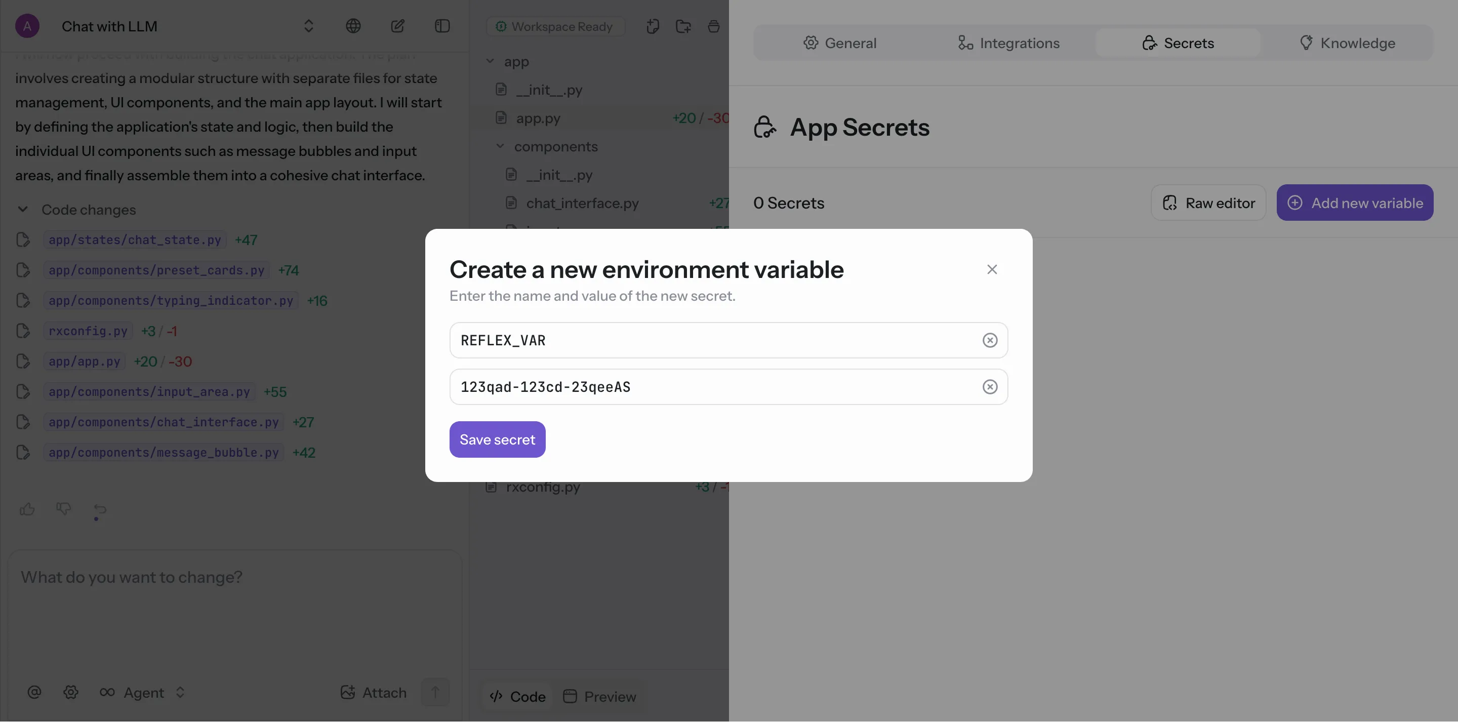 - Behavior: Each secret is securely stored and immediately available in the app environment.